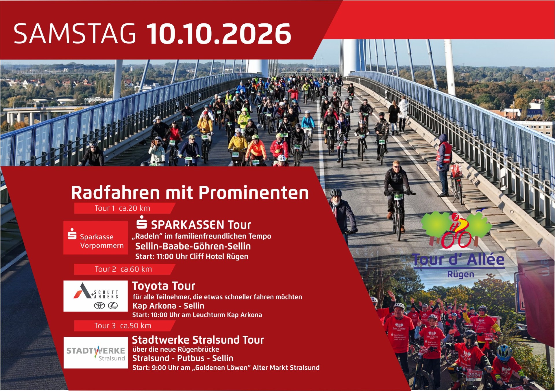 Die Familientour über die Rügen Brücke von Stralsund nach Sellin – exklusiv nur an diesem Tag möglich.